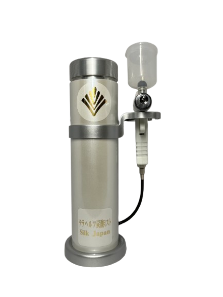 OUR PRODUCTS商品一覧 テラチップ テラシリカ(2種)500ml1本または300ml1本+100ml2本の500mlSETがあります。 食べるテラヘルツ テラヘルツ炭酸ミスト 炭酸ガス4本・ローション1本SET シルクパック テライオンスカーフ(3種) テラマット テラフットⅡ テライオンブラシ テラバンダナ テライオンループ